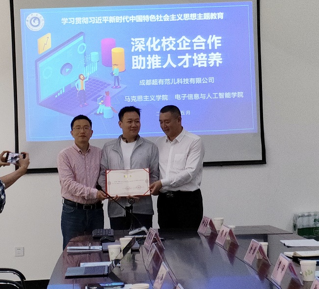 本网讯(文/何源 图/文雨)5月12日,马克思主义学院、电子信息与人工智能学院在实训楼B104室开展人才培养交流会,此次交流会邀请的企业是成都超有范儿科技有限公司,参加此次交流会的有马克思主义学院领导班子,电子信息与人工智能学院院长金澎、实践教研室主任项炜,会议由马克思主义学院党委书记李涛主持。