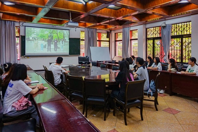 本网讯(文/郑淑瑜 图/叶晓雪)为进一步深入学习贯彻习近平新时代中国特色社会主义思想,5月13日下午,旅游与地理科学学院分党校采取集中和分散相结合的方式,组织学生党员和入党积极分子观看了由武汉大学西迁历史文化保护研究中心在武大西迁旧址——乐山文庙开展的“武大西迁乐山校史讲解”现场直播。其中,学院分党校第47期入党积极分子在实验楼102教室组织进行了集中收看。
