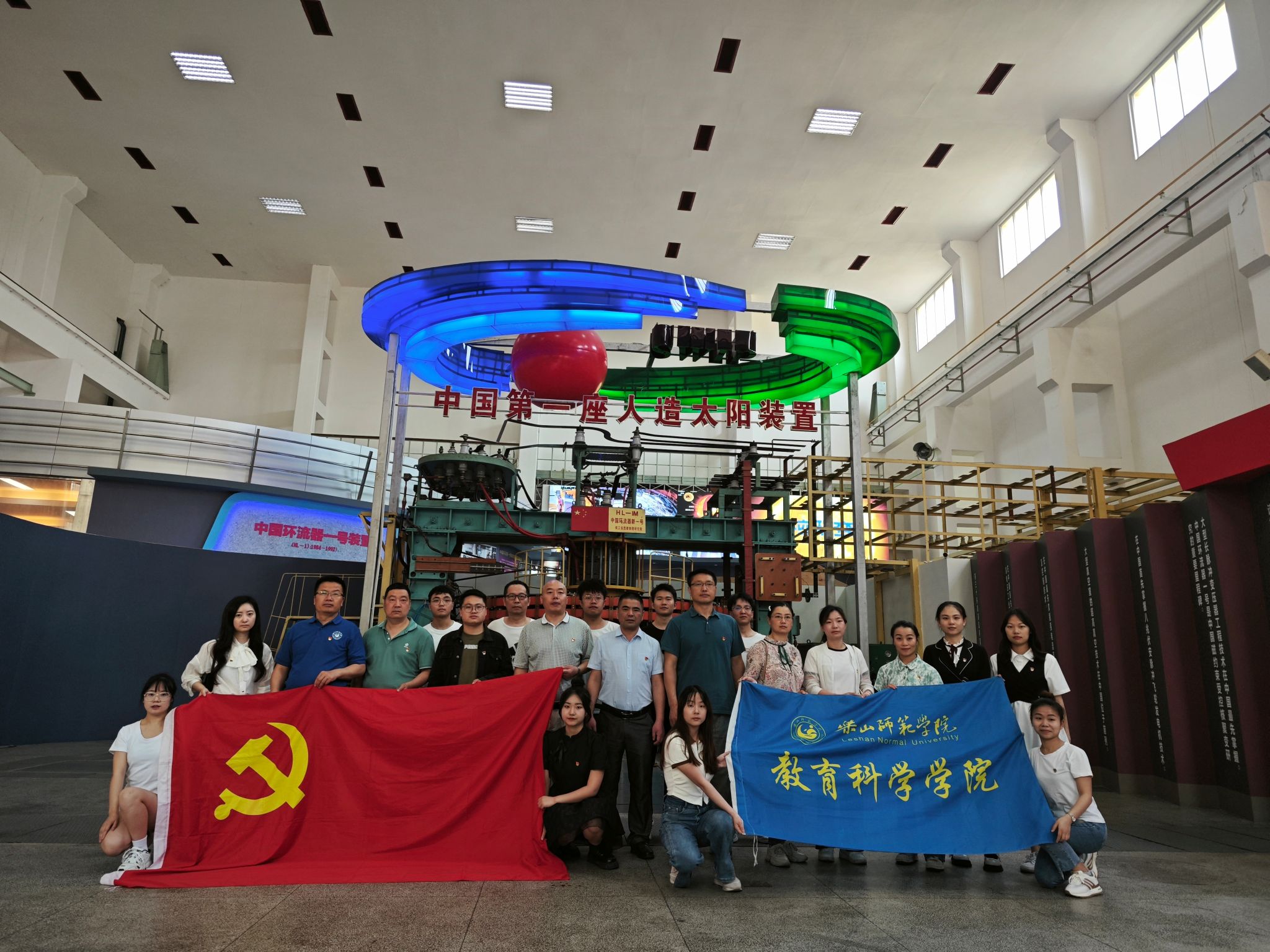 本网讯(文、图/朱志刚)5月16日上午,教育科学学院党委组织全体处科级干部、师生党员代表一行20人,前往位于成都理工大学工程技术学院内的红色教育基地——中国核聚变博物馆,开展了学习贯彻习近平新时代中国特色社会主义思想主题教育现场教学活动。