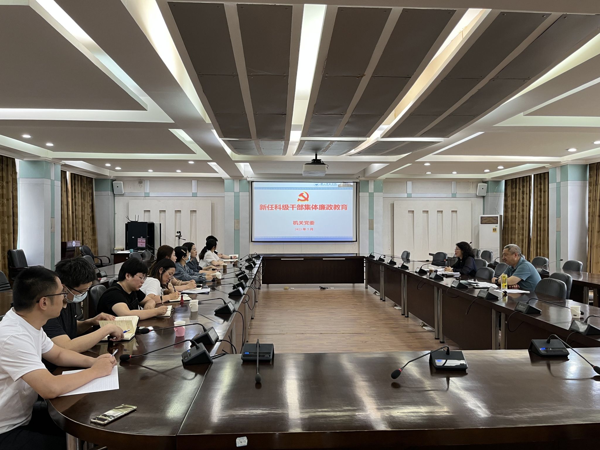 本网讯(文/刘艳萍 图/王雪猛)5月17日,机关党委在弘毅楼第一会议室对新任科级干部进行集体廉政教育。机关党委书记刘馨,机关党委副书记、纪委书记何永红参加。