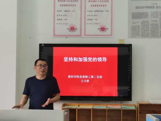 最后,王立新同志重申,作为新时代的高校党员教师,我们更应该坚决拥护党的领导,坚持“为党育人,为国育才”的理念,为国家、为社会、为民族培养更多优秀的人才。
