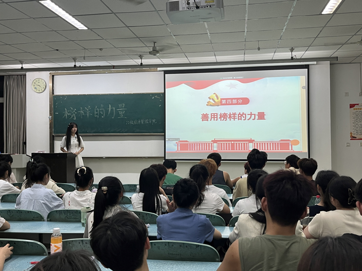 本网讯(文/敬雨霏 图/经管学子)近日,为深入学习贯彻党的二十大精神、弘扬社会主义核心价值观,展示当代大学生风采,发挥优秀大学生的榜样力量,经济管理学院积极组织开展“榜样的力量”系列主题班会,宣传优秀学生事迹,彰显榜样的力量。