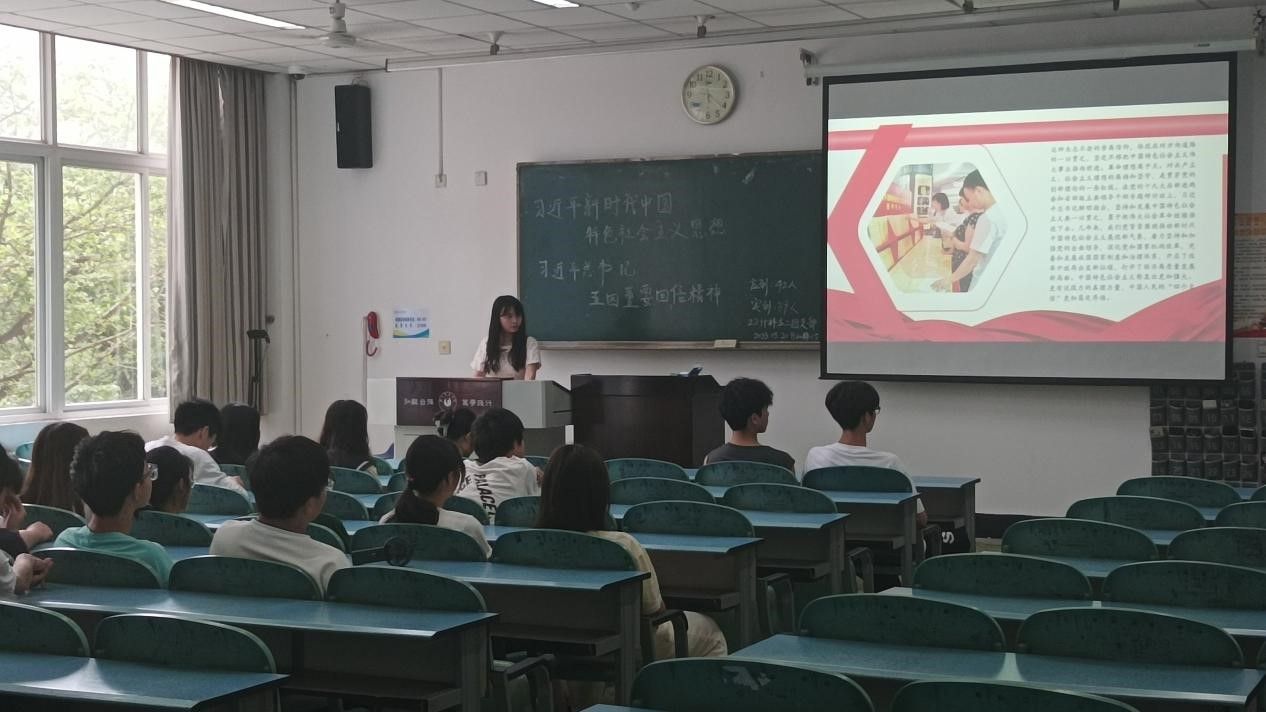 活动前,各团支部做好活动准备。活动开始,各班团支书主持活动进行。活动第一项,全体肃立,迎团旗,齐唱团歌《光荣啊,中国共青团》,随后各班团支书开始介绍本次活动主题及目的,组织学习习近平新时代中国特色社会主义思想和习近平总书记五四重要回信精神。大家在学习理论后互相交流讨论启示,纷纷发表自己的见解。活动最后全体学生重温入团誓词,活动结束。