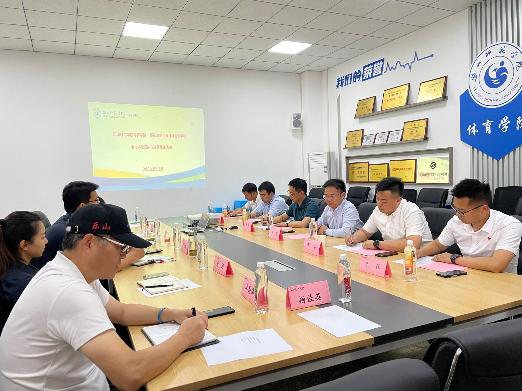 本网讯(文/赵磊 图/郭傲雪)5月18日,乐山市高新区嘉祥外国语卡塔尔世界杯决赛波胆预测 校长何刚、副校长张俊、招生处兼艺体处主任李达、宣传兼外联中心主任曾劲松、党支部副主任李相材、艺体处主任助理毛祥等一行到体育学院开展合作交流。体育学院党委书记钟大勇、副院长黄河、张爱平、场地管理中心主任李蜀伟、科研与实践管理科科长刘秋,办公室赵磊等参加了交流活动。