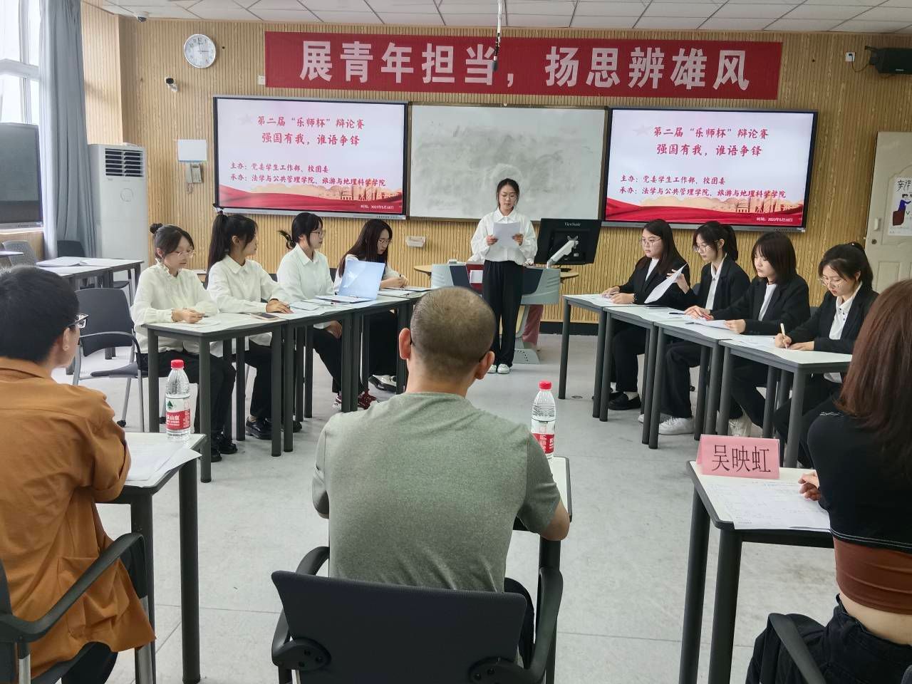 本次活动由学工部、校团委主办,法学与公共管理学院、旅游与地理科学学院承办,来自各个教学院的16支辩论队参赛。比赛分为一辩立论、对方四辩质询,二辩驳论、对方三辩质询、三辩质询小结、自由辩论和总结陈词五个环节,四个赛场同时进行。