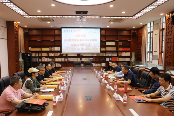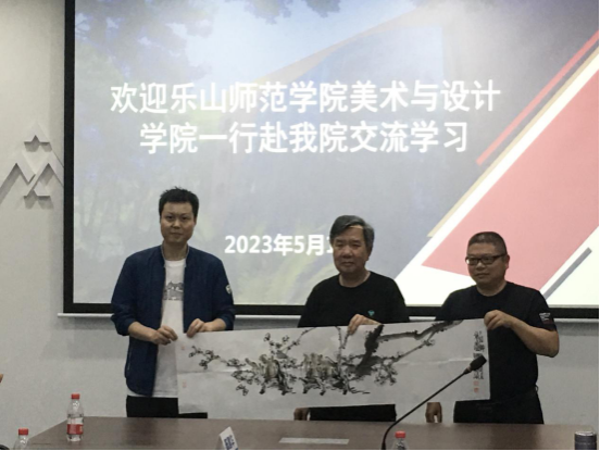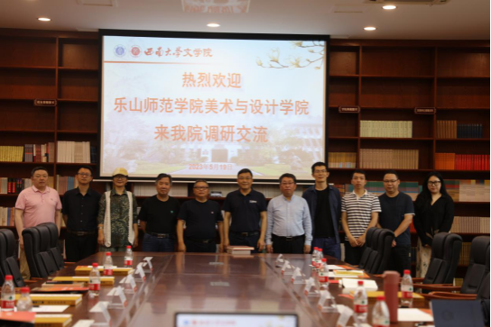 5月19日上午,熊泽文一行到西南大学文学院进行调研。文学院院长王本朝,书法研究所所长曹建教授等热情接待。王本朝介绍了西南大学文学院目前的师资情况以及科研,学科建设等情况。曹建介绍了西南大学书法研究所教学团队以及近年来所取得的科研成果等情况,介绍了研究生、博士生报考以及专业建设等相关情况,曹建带大家深入研究生教室感受书法课堂教学,交流了两校之间未来可能合作的一些事项。熊泽文代表乐师美术与设计学院表示感谢。