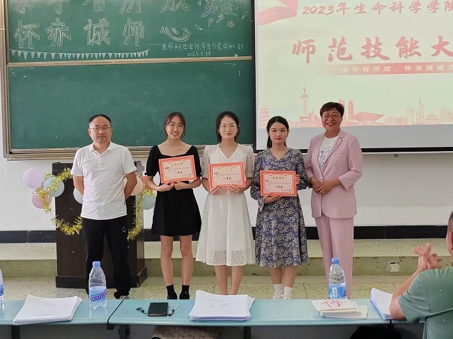 经过激烈的角逐,大赛产生了一等奖三名、二等奖六名,三等奖十二名,优秀奖二十名,评委以及到场嘉宾为获奖同学颁发获奖证书,并合影留念。至此,生命科学学院2023年“师范技能”比赛圆满结束。