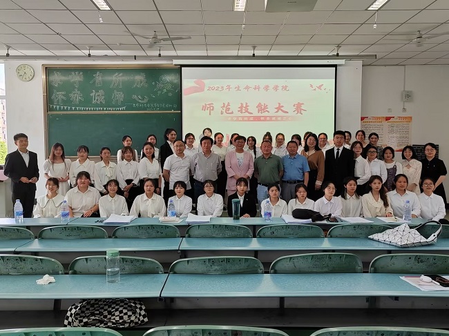 本网讯(文/马雨晴 图/胡康)为进一步提升师范生的教学技能、实践能力和综合素质,培育师德高尚、教学理念先进、教学技能扎实的优秀教师后备力量,5月19日14:00于行知楼301隆重举行生命科学学院2023年“师范技能”大赛。莅临本次比赛的评委及嘉宾有生科学院党委书记杨益,院长唐梅、副院长代发文、乐山市草堂高级中学生物教研室主任舒建新,教育科学院专业教师毛加宁、叶超、王朝君,生科学院专业教师龚明福、刘超、王延云,辅导员方丽、胡柏钒,2020-2022级各专业学生到现场观摩比赛。