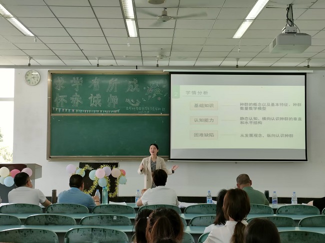 比赛伊始,由主持人介绍评委及比赛规则后,41位参赛选手依次上场。14号选手任苗苗展示的课题为《基因突变》,根据学生好奇、好玩、好动的天性,使学生的思维得到尽情的解放;29号选手肖何展示的课题为《群落的演替》,通过启发式教学与讲解法相结合,形成了以老师为主导,学生为主体的良好教学模式、教学环节,过程由浅入深,方法灵活多样。