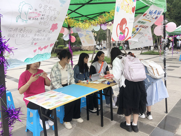 本次活动包括了“说说烦心事”“应对坏情绪”“感受爱、表达爱”“爱与希望”“未来皆可期”几个环节,同学们写下自己的烦恼和困惑,接受来自朋辈的鼓励,用小游戏的方式赶走压力和坏情绪,并和身穿可爱人偶服的同学合影。在此期间,同学们分享了所经历的温暖瞬间,正视并点燃了心里积极向上的正能量。最后,大家在明信片上写下自己的愿望、对自己的鼓励、寄语等,投入“未来”信箱,向过去的烦扰告别,展望璀璨的未来。