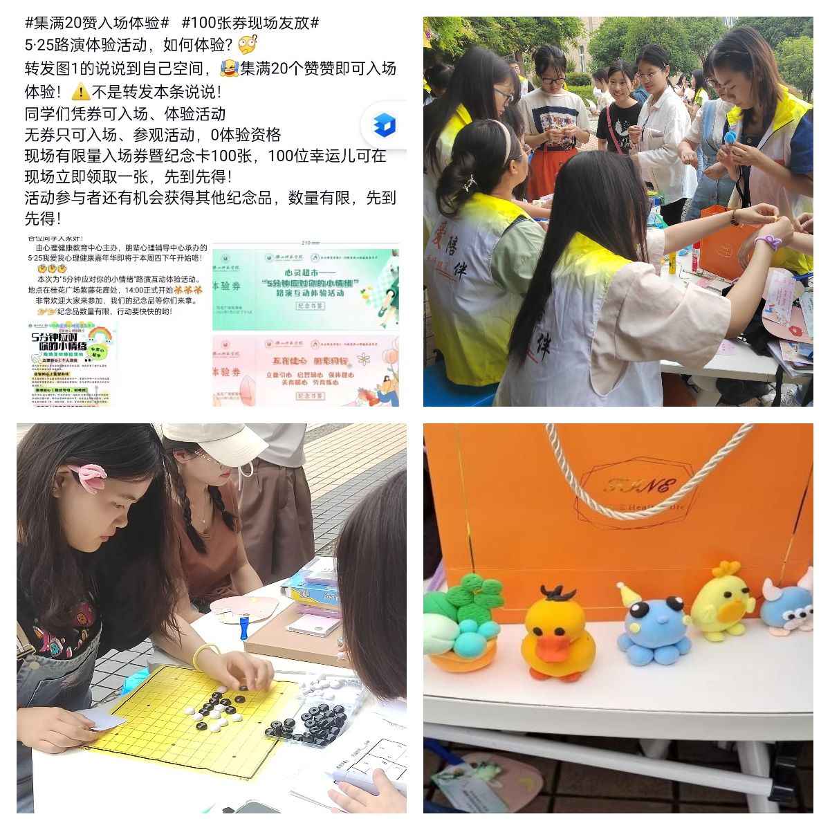 心理健康嘉年华是我校“贯通式”心理育人的重要品牌活动,旨在为大学生们提供覆盖广泛、精准有效的心理健康服务。今年3·25、5·25心理健康嘉年华以“培育积极心理品质·找寻美好人生意义”为主题,以积极心理学理论为基础,以五育健心为载体,设计出体验类、挑战类、探索类等活动,呈现情绪管理、人际关系、正向心态、自我探索等主题,普及心理健康知识,引导学生关注自身与他人心理健康,科学掌握获取幸福人生的心理密码,培育大学生积极向上的健康心态。