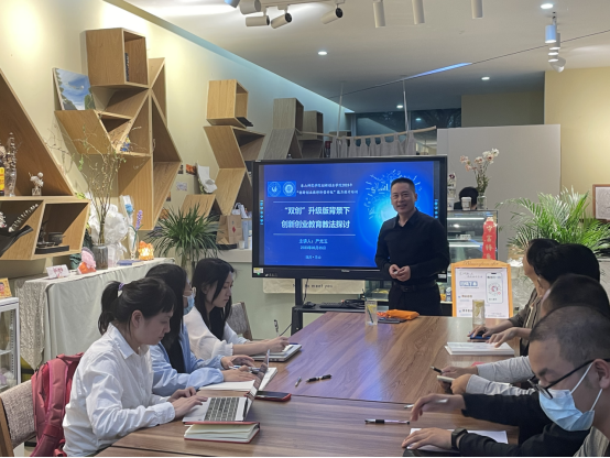 本网讯(文、图/廖蕾)为更好地开展创新创业课程建设工作、培养我校创新创业教学师资,5月26日晚,创新创业学院在孵化园一楼开展了以“双创升级版背景下创新创业教育教法探讨”为主题的2023年度5月线下教学工作坊,邀请到了成都职业技术学院创业学院院长、四川省自然科学研究系列高级专业技术职务评审委员会评审专家严光玉同我校近20名双创教师参加了本期工作坊。创新创业学院院长彭巧胤出席并主持了本次活动。