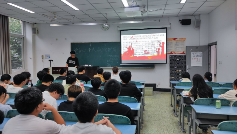 本网讯(文/冯雨婷 图/邝园星 文钟)为宣传并引领广大青年深入学习党的二十大精神,树立远大理想,担负时代责任,努力营造劳动光荣的社会风向和精益求精的敬业风气,5月26日晚上和5月27日上午,电子信息与人工智能学院分团委组织部分别组织了22级和21级所有班级团支部在行知楼教室举行了以学习“党的二十大战略部署”为主题的团日活动,各团支部团支书主持此次活动,组织部人员进行工作保障。