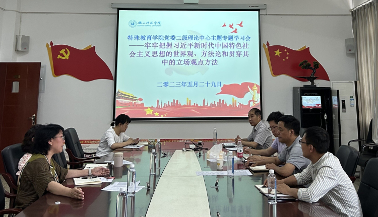 本网讯(文/张敏 图/李晓畅) 5月29日上午,特殊教育学院党委二级理论中心组在特教大楼A栋408会议室举行了主题教育5月专题学习会,本次学习的主题为“牢牢把握习近平新时代中国特色社会主义思想的世界观、方法论和贯穿其中的立场观点方法”,学院党委二级理论中心组全体成员参加了学习。学习会由学院党委书记刘宗泉主持。