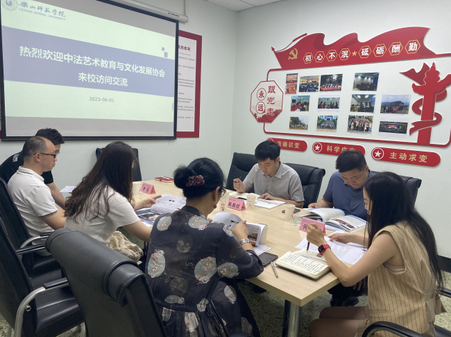 本网讯(文/刘玥 图/刘湘淋)6月1日上午,中法艺术教育与文化发展协会会长吴易欣,西南项目运营总监何鸿达一行来校访问交流,并在弘毅楼309会议室进行了交流座谈会。音乐学院副院长吴洋、美术与设计学院副院长熊火花、外国语学院教师陈晔婧及国际处工作人员参加了此次交流。