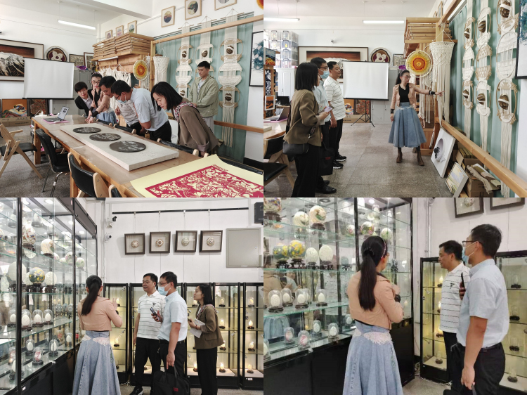 孙晶华带领调研组一行3人先后参观了长春大学特殊教育学院的纤维艺术工作室和蛋雕工作室并亲自讲解。她指出,两个工作室既是教学实验室,又是作品陈列室,既可以为视觉传达设计专业的听障本科生、硕士研究生开展现场实践教学,又可以让学生通过现有作品感受美学设计、工艺流程、实践操作的独特魅力,进一步激发其学习的兴趣和内驱力,为高质量残疾人职业人才培养提供了更多可能性。看到精美的蛋雕、掐丝、编织及美术作品,调研组一行不仅感受到了独具匠心的教育教学和人才培养质量,更为重要的是看出了听障学生在学习并提升自己实操技能时的那份专注和精神享受,“寓教于乐”“寓学于乐”在此得以完满阐释。孙晶华强调,蛋雕艺术作为该校残疾人高等教育视觉传达设计专业的特色方向,已经成功申请国家艺术基金2019年度艺术人才培养资助项目,实现了残疾人高等教育人才培养与科学研究的协同创新发展。