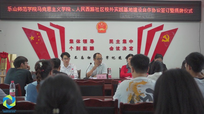 蒋政在致辞中指出,学院近年来高度重视学生实践能力培养,目前已与建川博物馆、郭沫若故居、战时故宫、丁佑君烈士纪念馆等共建实践教学基地。此次实践基地的成功建设,离不开广大老师、社区工作者、同学们的辛勤付出。人民西路社区社会实践基地为学生成长成才、实践锻炼搭建了一个很好的平台,希望同学们珍惜来之不易的锻炼机会,用心用情用力为社区广大群众服好务,发扬艰苦朴素精神和优良传统,把自己的学习所得与实际工作有效结合起来,真正在实践中经风雨、做贡献、长才干。