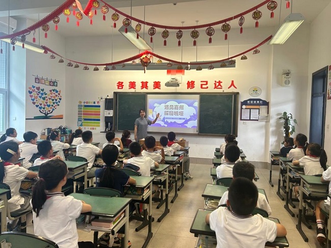 本网讯(文图/吴薇)6月8日,旅游与地理科学学院教师、四川世界遗产普及基地成员吴薇到乐山嘉祥外国语小学开展了主题为“遇见嘉州 探秘城垣”的科普讲座。