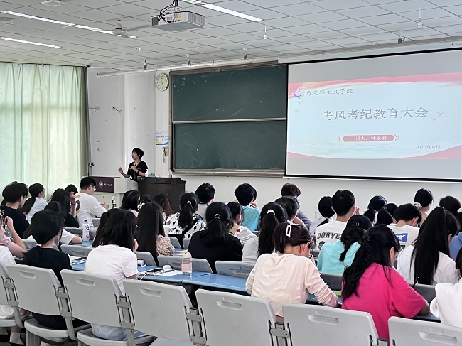 本网讯(文/阎媛媛 图/罗雅欣)为进一步落实好各项安全防范措施,6月8日下午,马克思主义学院于行知楼214教室开展安全教育大会,由我院党委副书记钟永淑主持开展,辅导员刘蕾及20级、21级、22级全体学生参与其中。