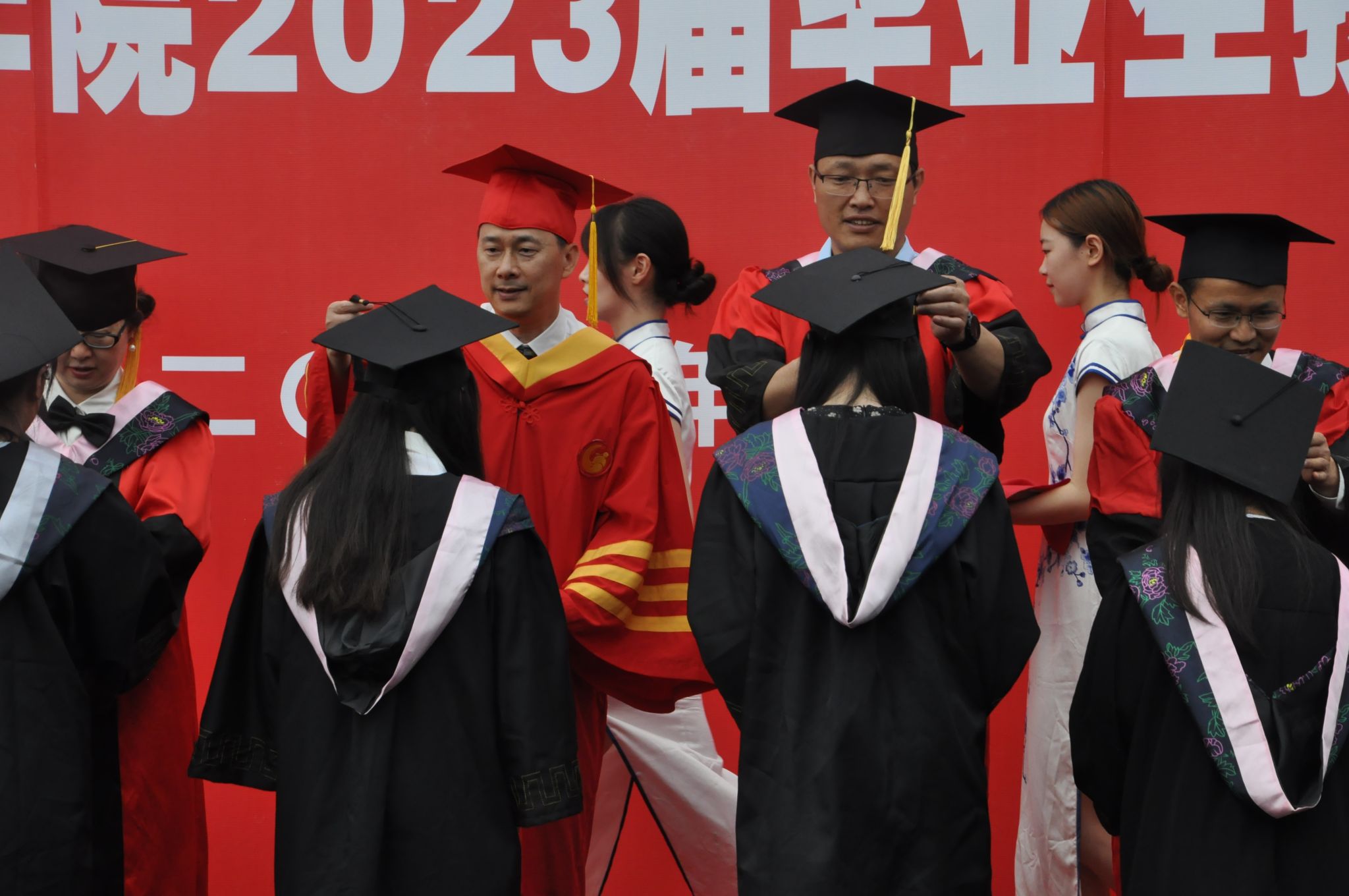 授位仪式开始,头戴学位帽、身着学位服的毕业生们怀着激动的心情依次上台,导师们为同学们拨穗正冠,与他们合影留念,并代表学院向毕业生赠予了毕业留念礼品。2023届毕业留念采用水晶制作,寓意“纯洁、典雅和坚持”,内嵌“木铎”,取自《论语.八佾》“……天以夫子为木铎”。木铎一面刻篆书“乐师”,一面刻“教科”,衬以校徽。盒子外印烫金教科理念和《荀子·修身》“道虽迩,不行不至;事虽小,不为不成”。希望走出校园的毕业生们身怀教育理想,有德、有为、有乐,让祖国的未来遇见一生的“好老师”。