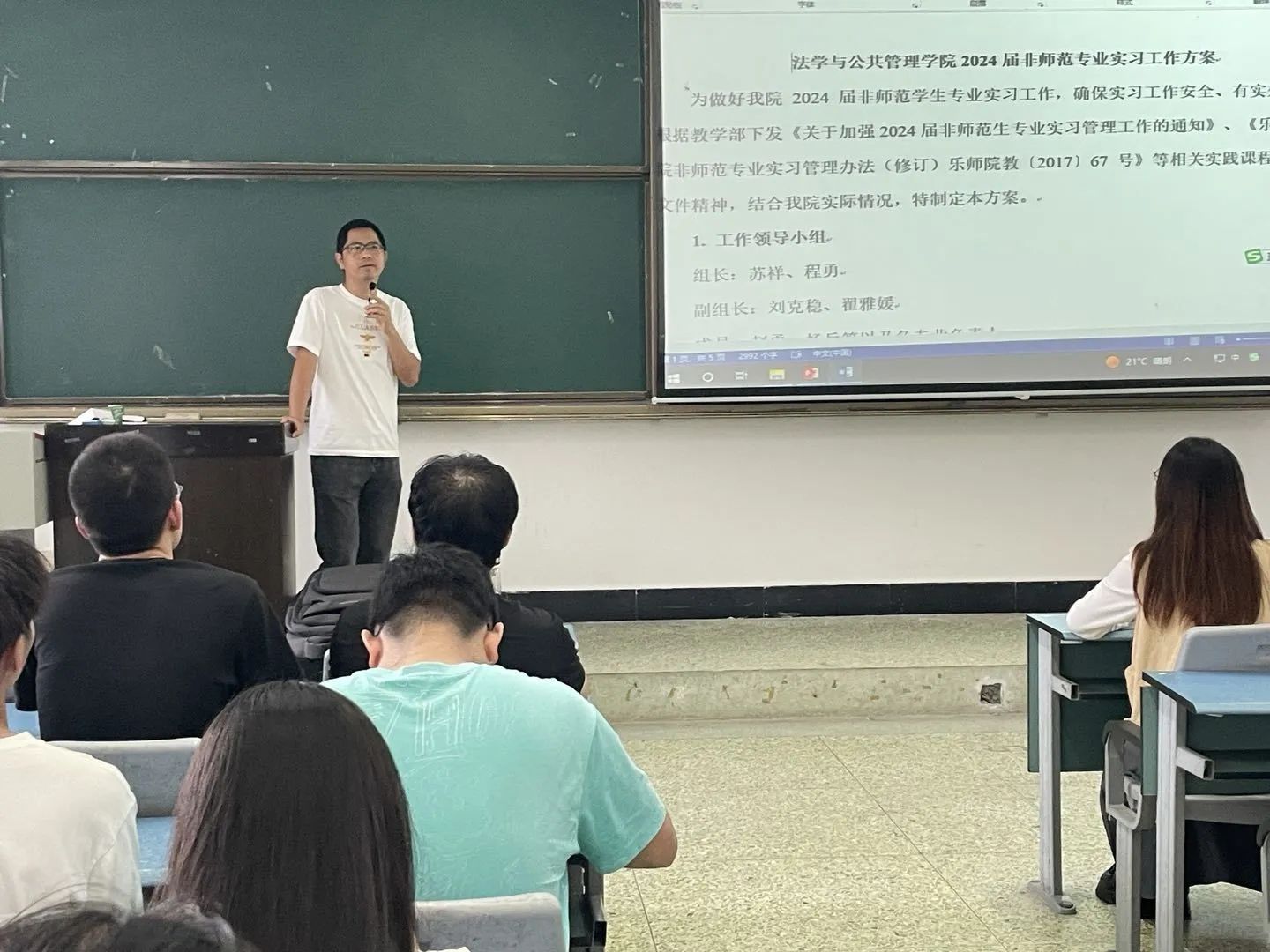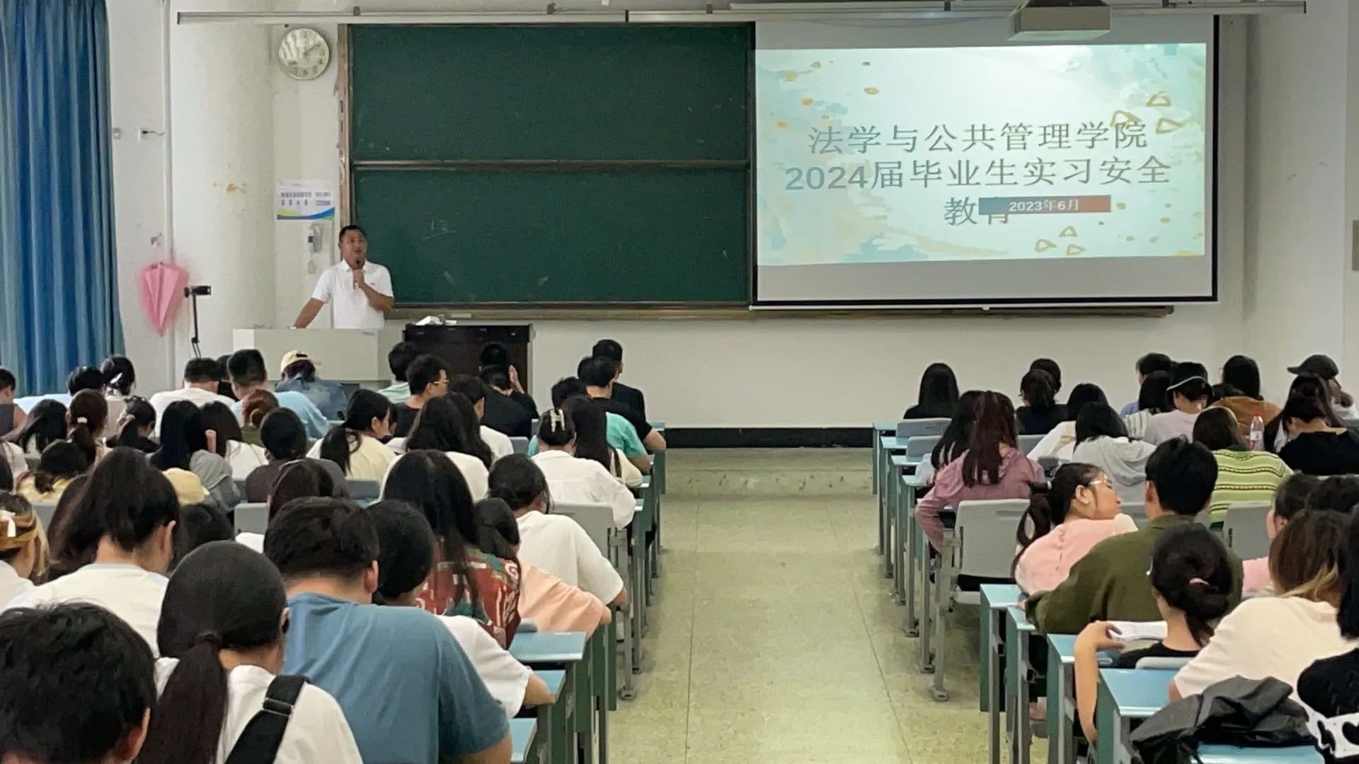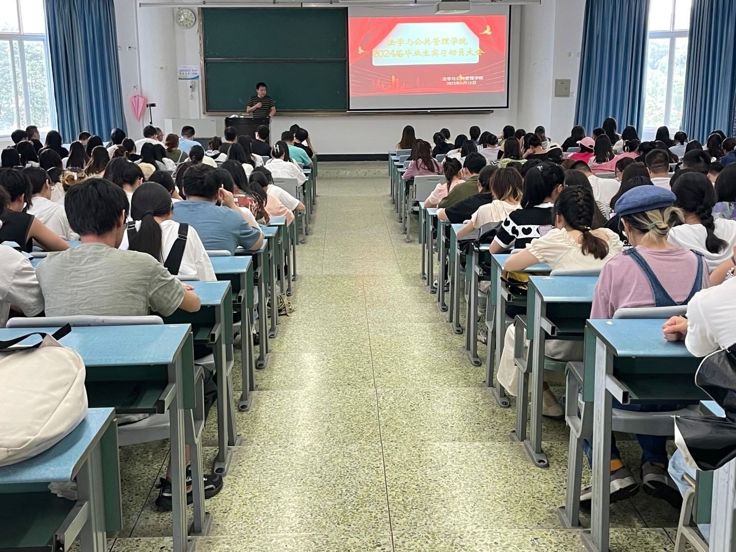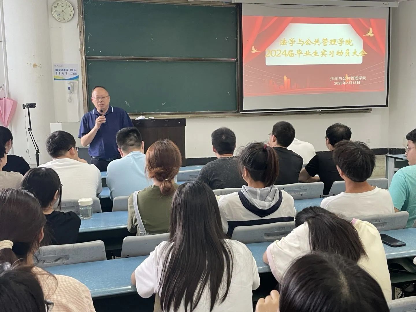 本网讯(文、图/杨兵)为加深20级全体同学对实习、毕业论文的认识,法管学院于6月15号16:00在行知楼314教室举行2024届毕业生实习动员暨毕业论文宣讲大会。本次大会参加人员有学院党委书记程勇、党委副书记翟雅媛、副院长刘克稳和赵勇、学生管理科科长杨兵、辅导员江琳,以及2024届全体毕业生。