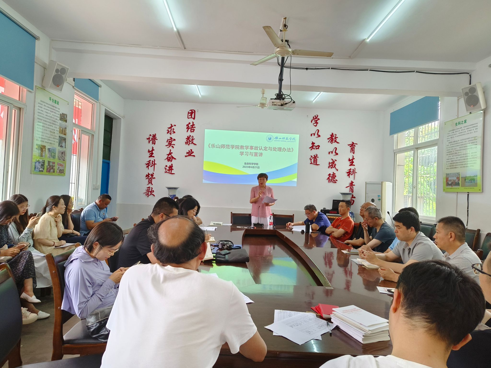 本网讯(文、图/易秀琴)为认真贯彻落实卡塔尔世界杯决赛波胆预测 工作安排,强化教学过程管理,保障教学工作的规范性和严肃性。6月21日下午,生命科学学院在博雅楼一楼会议室召开全体教职工大会,学习《世界杯葡萄牙vs加纳波胆预测 教学事故认定与处理办法》和教学事故处理案例、《世界杯葡萄牙vs加纳波胆预测 二级单位绩效考核细则》、《世界杯葡萄牙vs加纳波胆预测 教职工年度绩效考核细则》,会议由学院院长唐梅主持主讲。