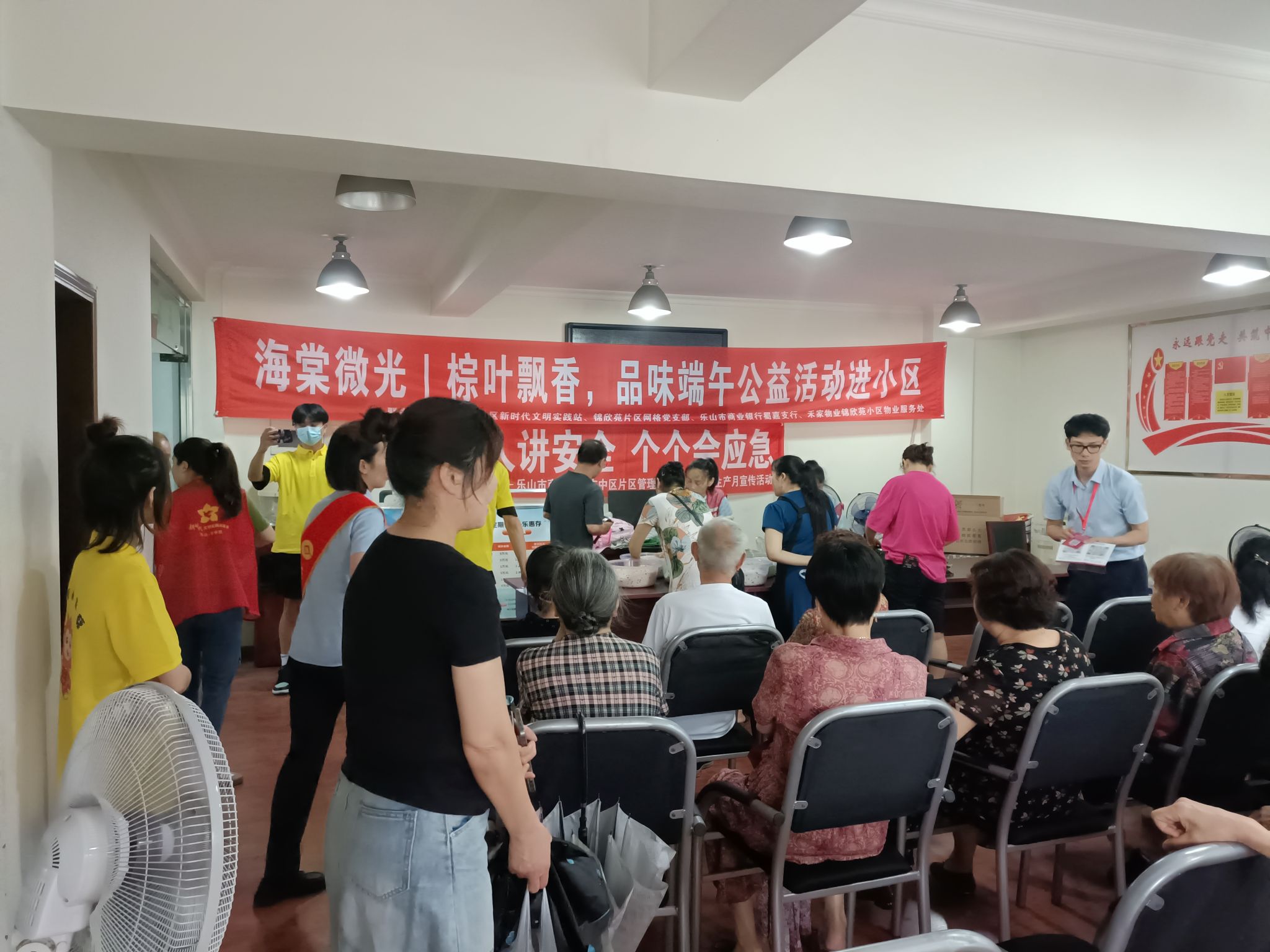 本网讯(文/向芃阳图/钟宇桐)2023年6月21日,演武街社区锦欣苑热闹非凡。由社区居委会锦欣苑网格党支部,联合乐山市商业银行,锦欣苑小区物业处为辖区居民党员和居民们共同开展了“粽叶飘香,品味端午”公益主题活动。法管学院社会工作专业21级向芃阳、陈鑫、钟宇桐、杨思雅4名同学,做为小乐葵志愿者参与了此次活动。