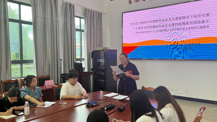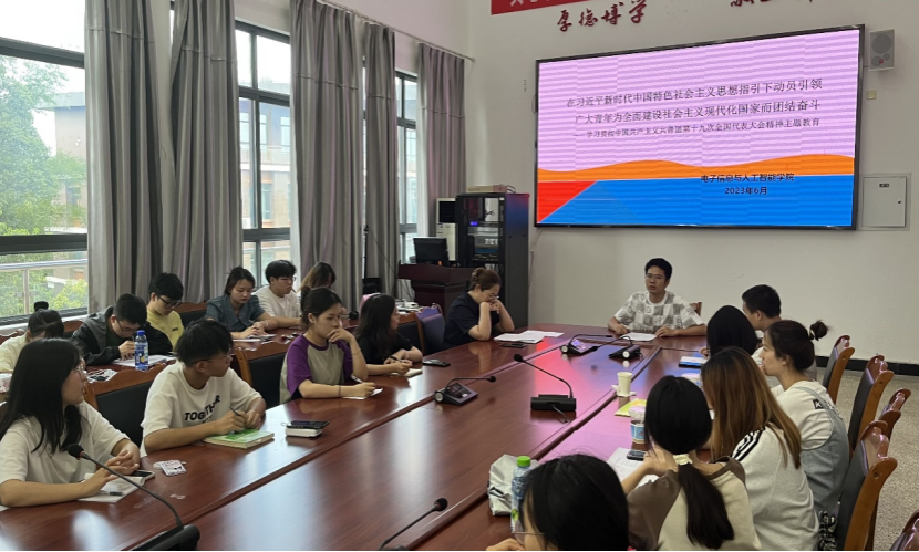 本网讯(文/黄泽静,图/陈圣)为深入学习贯彻中国共产主义共青团第十九次全国代表大会精神,弘扬习近平新时代中国特色社会主义思想。电子信息与人工智能学院于6月29日在特教C501开展了学习中国共产主义共青团第十九次全国代表大会精神主题教育的会议。此次会议由辅导员狄红霞主持,辅导员雷雄锴和全体学生干部共同参与。