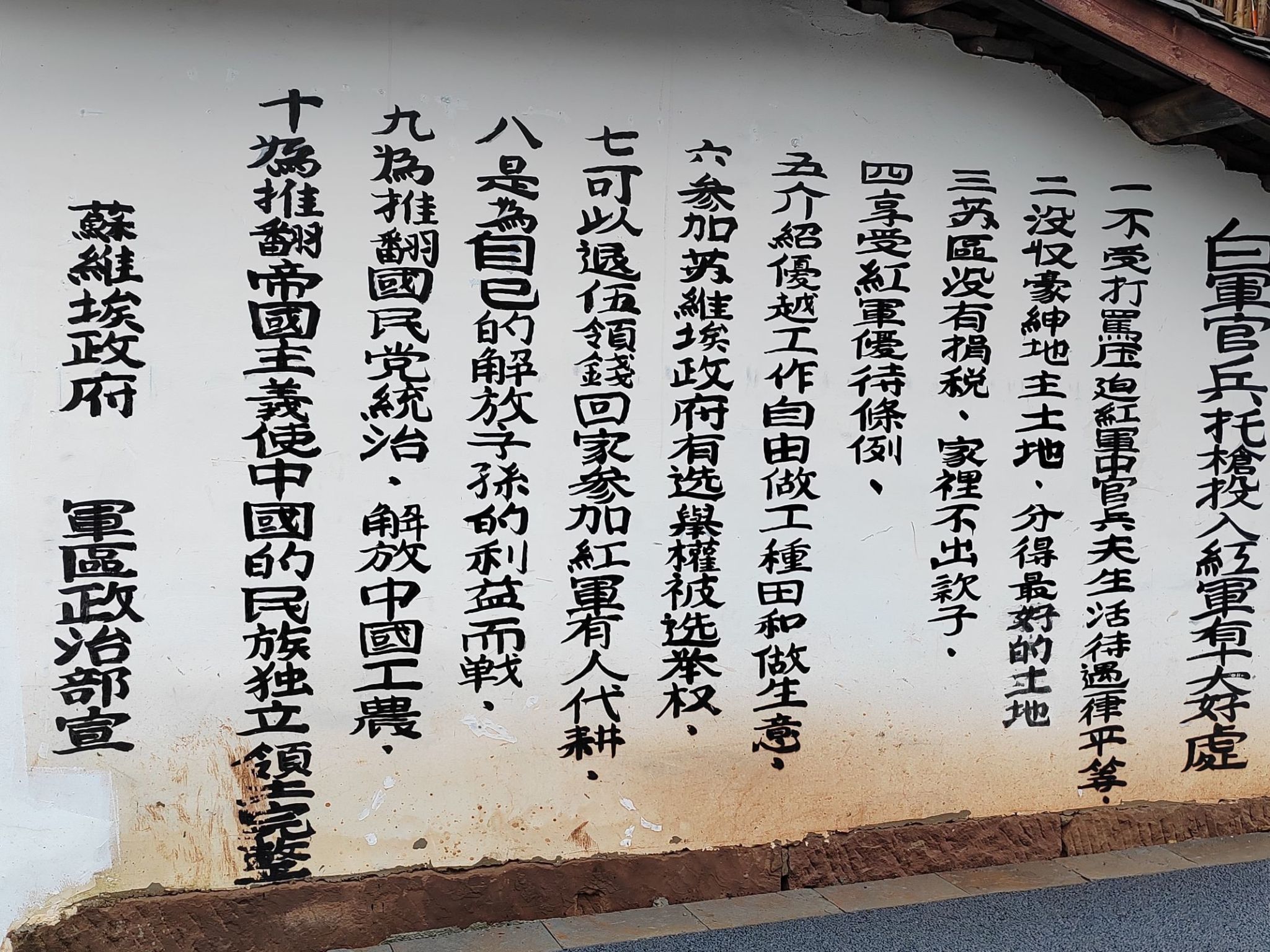 首先,同学们来到“红军第一村”。“中国红军第一村”坐落于遂宁市蓬溪县大石镇牛角沟村。1929年,一面红色旗帜在这里升起,川军旅长、共产党员旷继勋带领全旅4000余官兵,在牛角沟村竖起“中国工农红军四川第一路”的旗帜并建立西南第一个县级红色政权——蓬溪县苏维埃政府。如今,同学们跟随着历史的脚步来到,每一件物品、每一条红军标语都再现了当年那场轰轰烈烈的起义。再回那充满硝烟的年代,伟大的红军精神让我们十分感动。