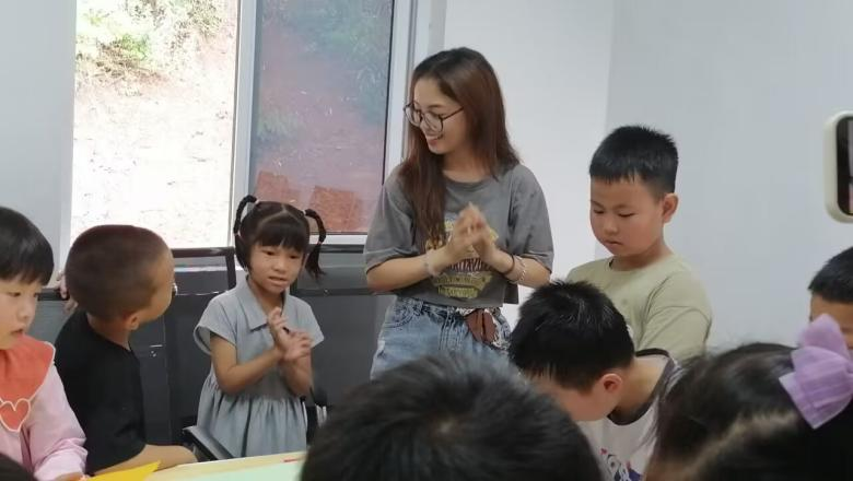 活动第一天,唐菀、朱梓菡等小老师带领真武村的孩子们学唱《国家》这一经典爱国曲目,教学活动在孩子们的欢闹声中展开,带课老师为孩子们讲述了《国家》这首歌的相关背景,这首歌初衷是纪念中华人民共和国建国六十周年,歌词以散文诗的形式记录了作词人的心声,表达了爱国爱家之情,“我爱我的国,我爱我的家……”随着教唱不断深入,孩子们被歌曲中的情绪所感染,眼神中透露着真挚热烈的情感,可以看出他们对于热爱祖国的意义有了初步的理解。第二阶段是由所有带课老师结合歌词教授相关手语,在具象化的手语语言表达下,孩子们对《国家》这首歌的意义有了更深刻的理解。教学活动结束后,孩子们踊跃发言,表达了对《国家》这首歌的感受和理解,他们认为这首歌展现了国的强大与家的祥和,要把祖国当做我们共同的家,各尽所能,发挥所长,建设祖国。