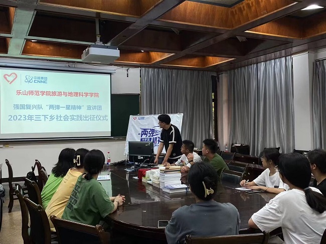 本网讯(文/施翔耀 图/廖依玲)为切实增强学生社会责任感,全面提升学生综合实践能力,7月3日下午,旅游与地理科学学院“两弹一星”精神宣讲团队——强国复兴梦之队在学院实验楼102教室举行出征仪式。