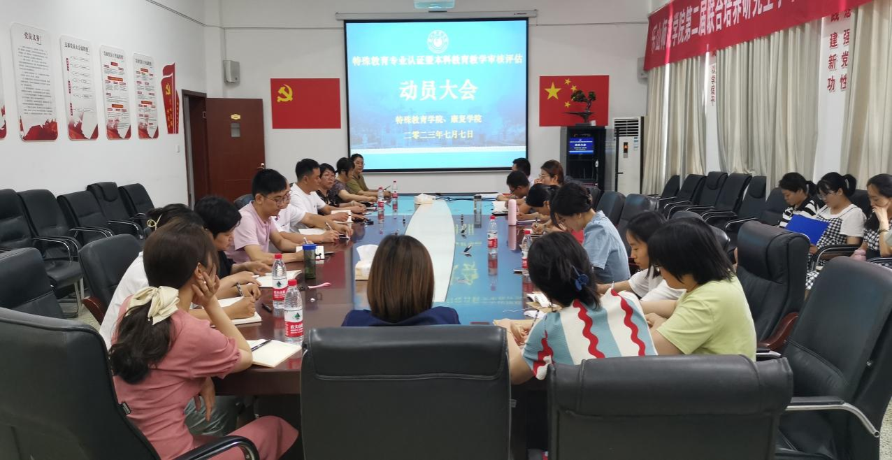 本网讯(文 汪科/图 张敏)7月7日下午,特教学院在特教大楼A408召开特殊教育专业认证暨本科教育教学审核评估动员大会,全体教职工参加了此次会议,会议由特教学院院长张梅主持。
