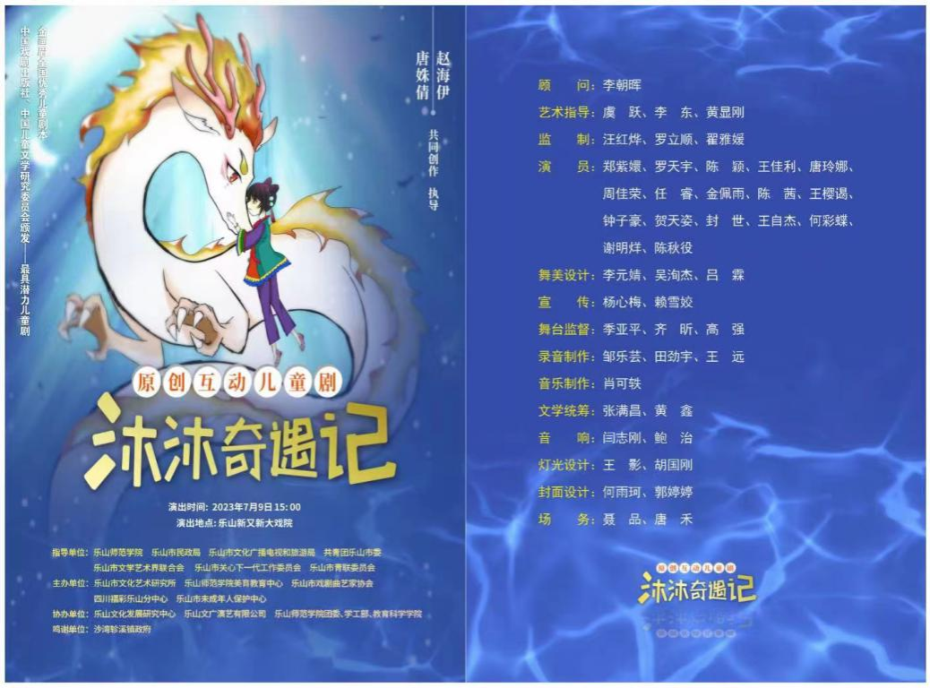 《沐沐奇遇记》是由四川省舞蹈家协会会员、世界杯葡萄牙vs加纳波胆预测 讲师唐姝倩,四川省戏剧家协会会员、乐山市文化艺术研究所戏剧创研部主任赵海伊,共同创作执导,该剧先后获评全国最具潜力儿童剧目”,入选“乐山嘉乐汇戏剧周展演节目”,剧本收录于“2023金画眉全国优秀剧本集”。