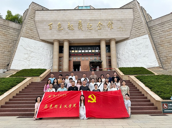 本网讯(文/何源 图/吕渊)为深入学习贯彻习近平新时代中国特色社会主义思想主题教育,7月9日至7月16日,马克思主义学院郑文杰等一行30余人赴遵义会议会址、通道转兵纪念馆、湘江战役纪念馆、百色起义纪念馆等爱国主义教育基地开展了为期8天的现场教学。