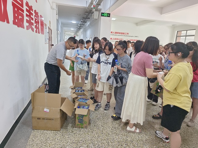 随后,方丽强调了暑期的用电、防暑、防骗等安全事宜。最后,老师们为考研学子分发了“夏日清凉”慰问礼品,表达了学院对考研同学们的美好祝愿。