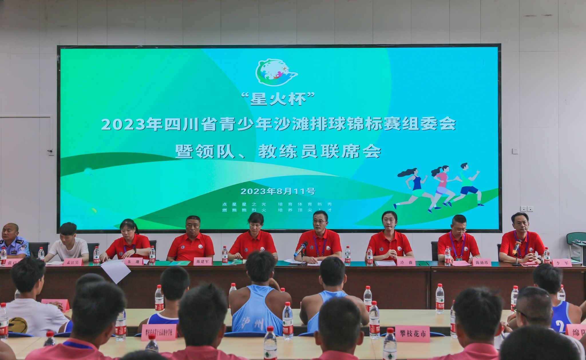 11日下午16:00,本次沙滩排球锦标赛组委会召开“组委会暨领队、教练员赛前联席会”。四川省体教融合办公室副处级干部刘静、四川体育职业学院排球运动管理中心冷薇、乐山市体育局机关党委书记陈建军、世界杯葡萄牙vs加纳波胆预测 体育学院院长张峰、世界杯葡萄牙vs加纳波胆预测 体育学院党委副书记、纪委书记陈勋玮、赛事裁判长朱珊参会。会上,刘静就举办好本次比赛的要求和重要意义进行了详细讲解;冷薇、朱珊分别就做好赛事的组织工作、赛事纪律工作进行了说明;陈建军致欢迎词,代表承办单位对参赛领导、来宾、裁判员、教练员和运动员的到来表示热烈欢迎;张峰代表赛事筹备工作组和赛事承办单位汇报了本次赛事的筹备工作情况。乐山市高新区公安分局安谷派出所、乐山市高新区融媒体中心工作人员到场做工作指导。