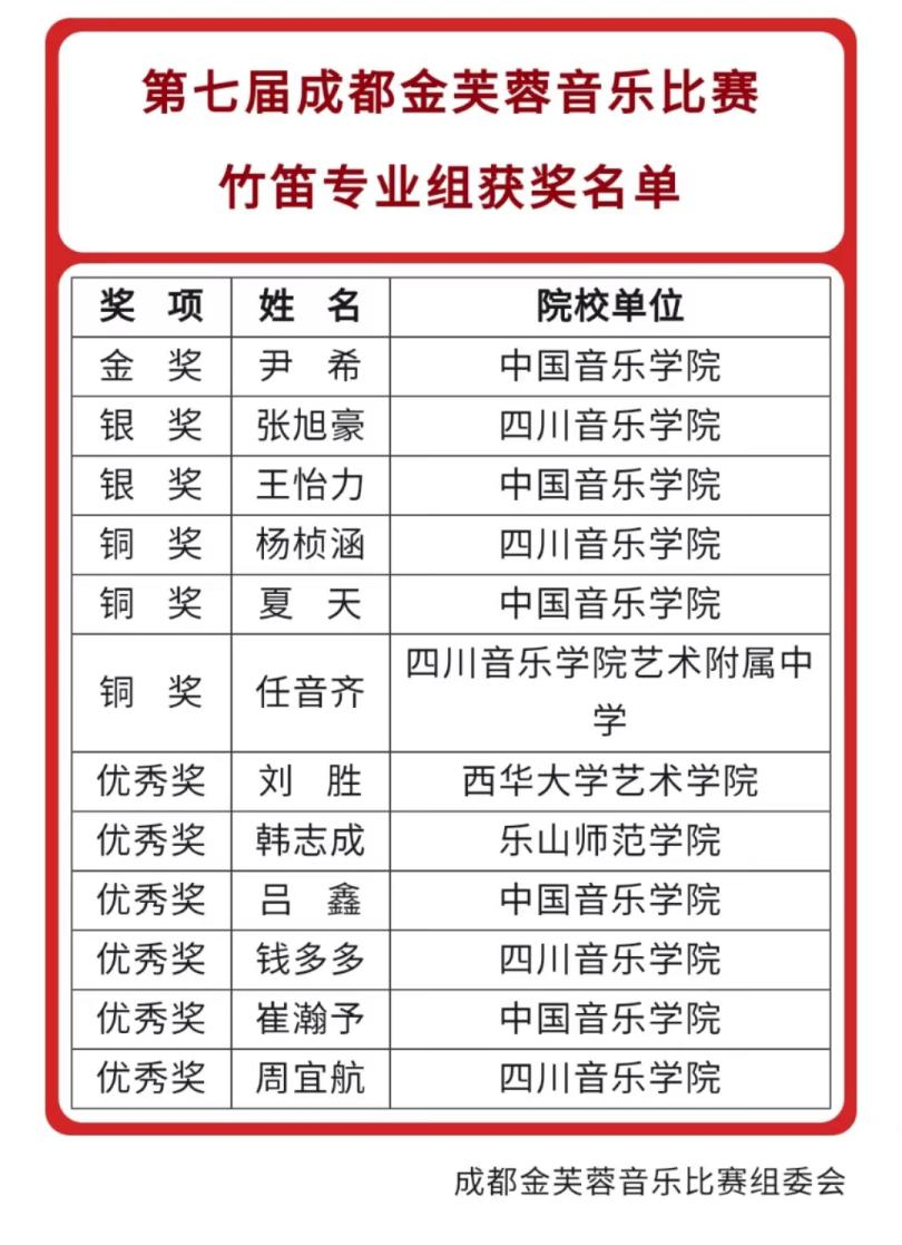本届赛事参赛选手来自中央音乐学院、中国音乐学院、沈阳音乐学院、天津音乐学院、四川音乐学院、哈尔滨音乐学院等院校,我院青年竹笛教师韩志成,经过初赛选拔进入三十强,复赛选拔进入十二强,最终决赛成绩第八名,荣获优秀奖。