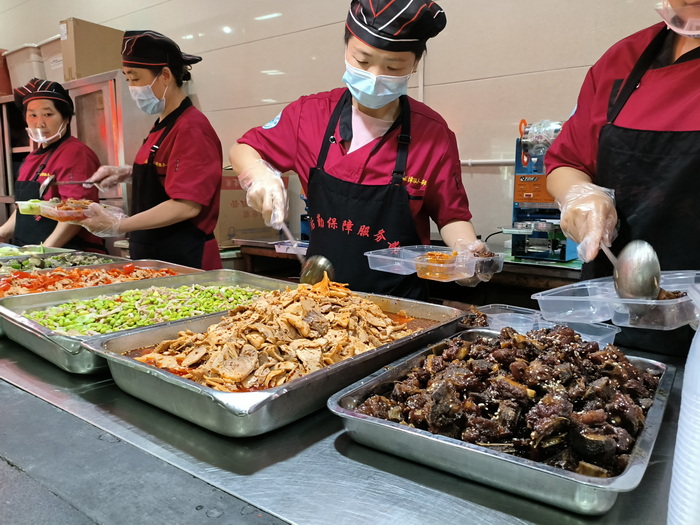 饮食服务中心为给新生及其家长提供健康安全的饭菜,各食堂做到了餐具和炊具清洗消毒到位、环境卫生整洁到位、食品卫生安全到位。为使广大新生及家长吃到不同口味的饭菜,各食堂增加了菜肴的品种和数量,各食堂、各售饭窗口主、副食种类齐全、丰富,并适当延长了供餐时间。中心做好了全校迎新工作人员2000余份工作餐的制作和配送。