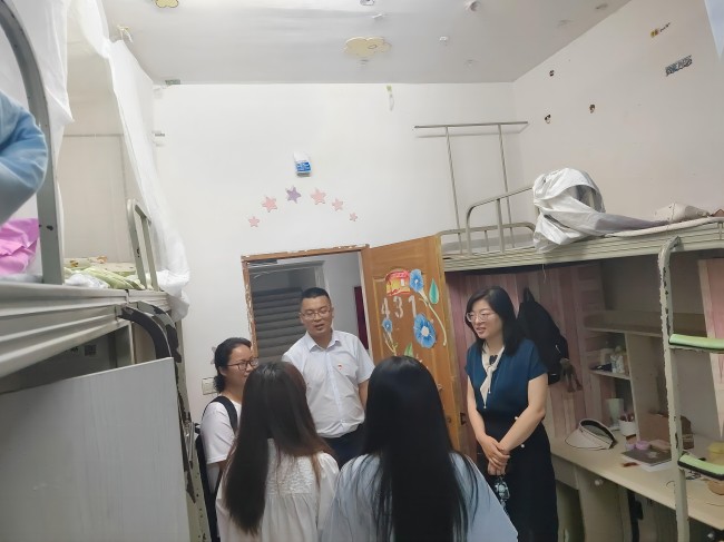 走进新生宿舍,学院领导对各位同学的到来表示热烈地欢迎。随后,学院领导详细询问了新生对于住宿环境、饮食等方面的适应情况。学院领导嘱咐,各位新生要注意宿舍卫生和安全,严格遵守宿舍管理规定,共同营造良好的住宿和学习环境。在学习方面,学院领导、班主任表示,各位同学应该主动、认真地学习专业知识,按时上课,不早退不迟到,做一名信念坚定、乐观积极的新时代大学生。