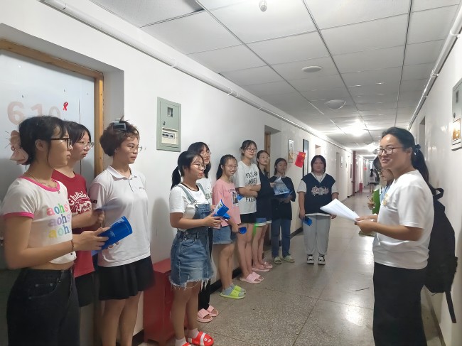 本网讯(文、图/崇小芳)为了解我院新生住宿和生活情况,9月8日晚上19:00,生命科学学院党委书记杨益,党委副书记包天骏,副院长代发文、辅导员方丽、曹力欢、胡柏钒,班主任王璐、郑慧芳、郑先喆以及新生助班走访新生宿舍,慰问新生。