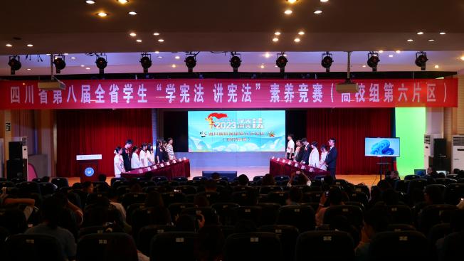 本网讯(文/杨雯婷 李玉锦 图/张启军 章培榆)为扎实推进普法教育宣传,大力弘扬法治精神,提高学生法治意识,引导学生做知法、懂法、守法好青年。2023年9月6日上午,由四川省教育厅主办、世界杯葡萄牙vs加纳波胆预测 承办的“四川省第八届全省学生‘学宪法 讲宪法’演讲比赛和素养竞赛(高校组第六片区)”在卡塔尔世界杯决赛波胆预测 旷怡楼一教八阶和音乐学院邦泰学术报告厅成功举行,来自第六片区15所高校的师生代表参加比赛,青少年法治教育中心主任陈鹏一行莅临现场指导。