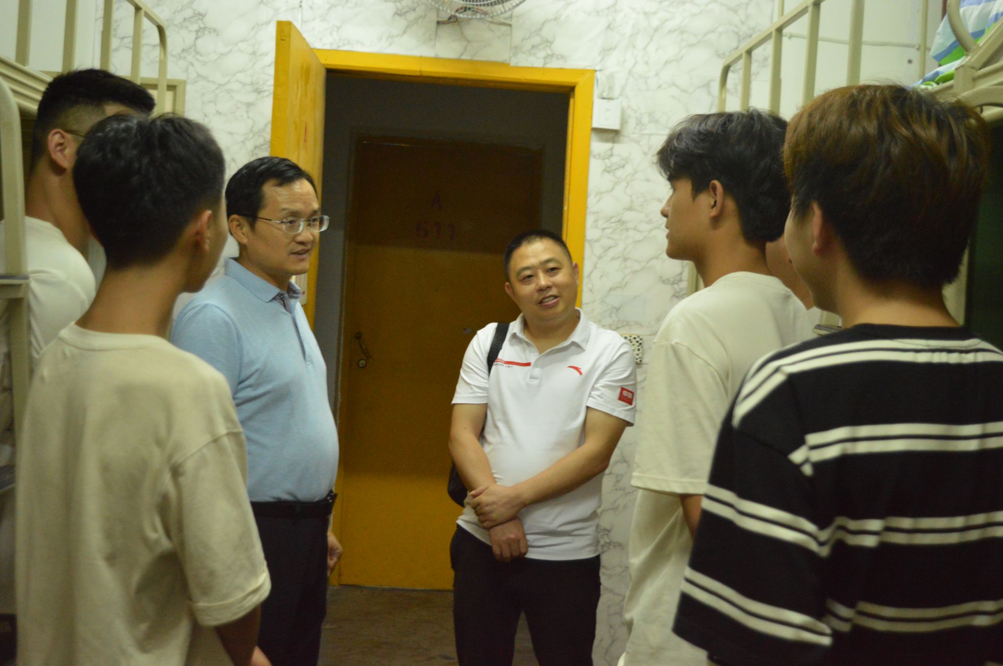 本网讯(文/王章琴 图/罗丽、张淑亭)为进一步了解新生宿舍入住情况,帮助新生更好的适应大学生活环境,9月8日晚,数理学院党委书记马力强、院长屈小兵、副院长孙海,辅导员曹琳、陈新凯、全体新生班主任和代理班主任深入新生寝室新二、新三、学十进行了走访和慰问。