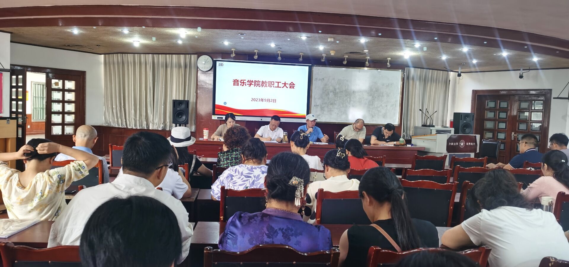 本网讯(文图/毛敏)9月2日下午,音乐学院召开了全体教职工大会和党员大会,党委书记罗谊恒主持会议。