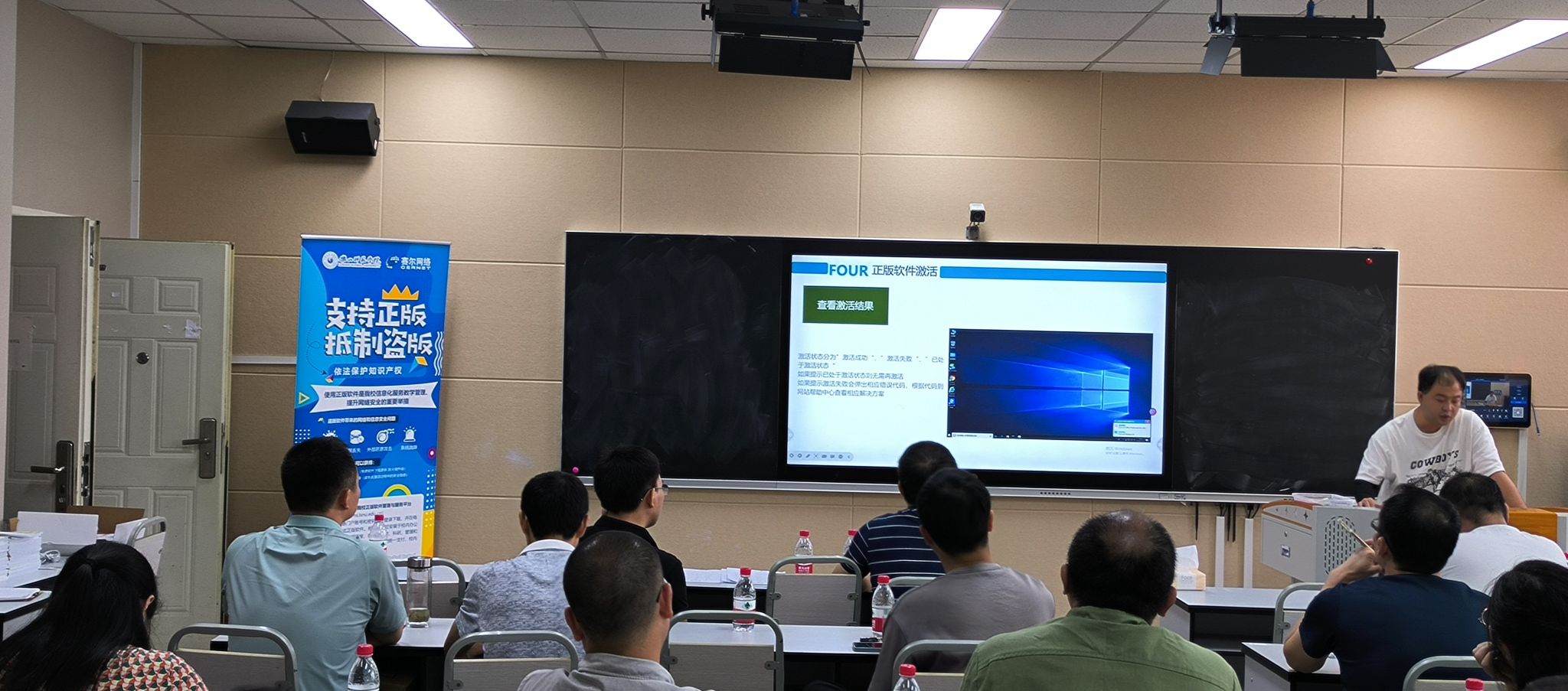 随后,软件正版化实施工程师在现场进行软件正版化平台的详细讲解,从正版软件平台介绍、软件资源下载、激活工具使用,到常见问题的解决处理,参会人员互相讨论、积极提问,对软件正版化实施的操作步骤和过程都有了一定程度的了解。