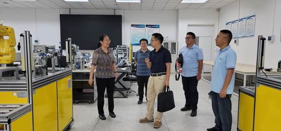 在成都工业学院智能制造学院院长黄晓燕、招标采购中心副主任陈思卓的带领下学院一行参观了智能制造学院实验室,在现代产业学院的大框架下,实验室的建设、管理和使用对人才培养非常重要。