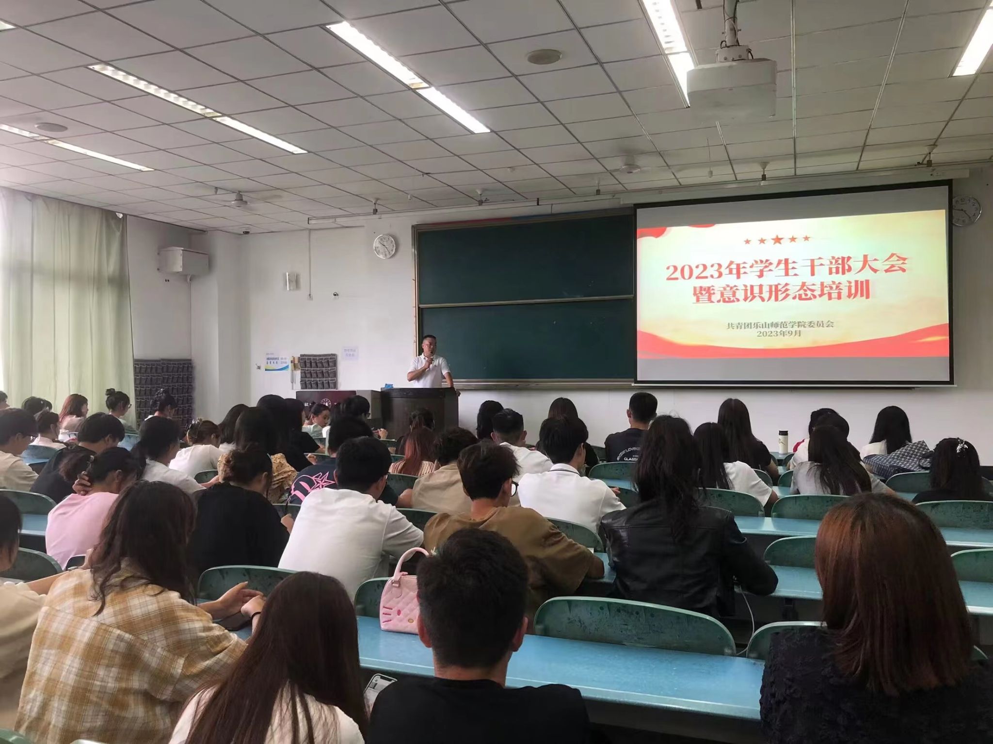 本网讯(文/余雨懁 杨蓓蓓 图/周奕菲)为进一步加强学生干部队伍建设,提高团学组织的向心力和凝聚力,9月21日下午,校团委在行知楼325教室开展了“2023年秋季学生干部大会暨意识形态教育培训会”,校团委书记李东、副书记余雨懁,校级主要学生干部及各学院分会主席、分团委学生副书记参加了会议。大会由校团委素质拓展与社团管理中心主任杨蓓蓓主持。