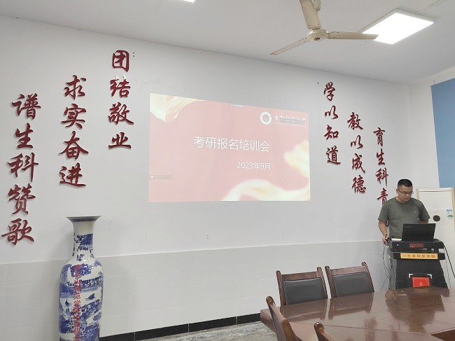 本网讯(文图/崇小芳)为助力考研学子明确考研方向,明晰报考思路,提升学生考研成功率,9月28日,生命科学学院在学院会议室召开2023届研究生报名培训会,会议采用线上线下相结合的方式进行。生科学院党委副书记包天骏、学院博士郑慧芳、分团委书记方丽、辅导员曹力欢、2018级毕业生骆佳丽及2023届考研学生参加此次培训会。