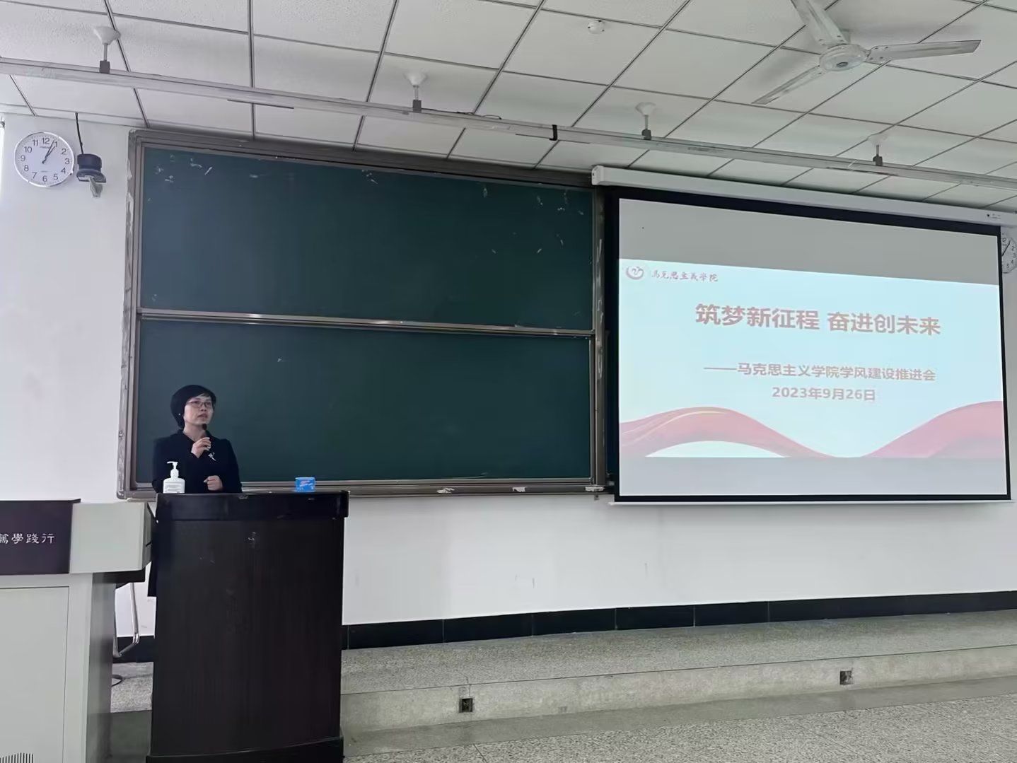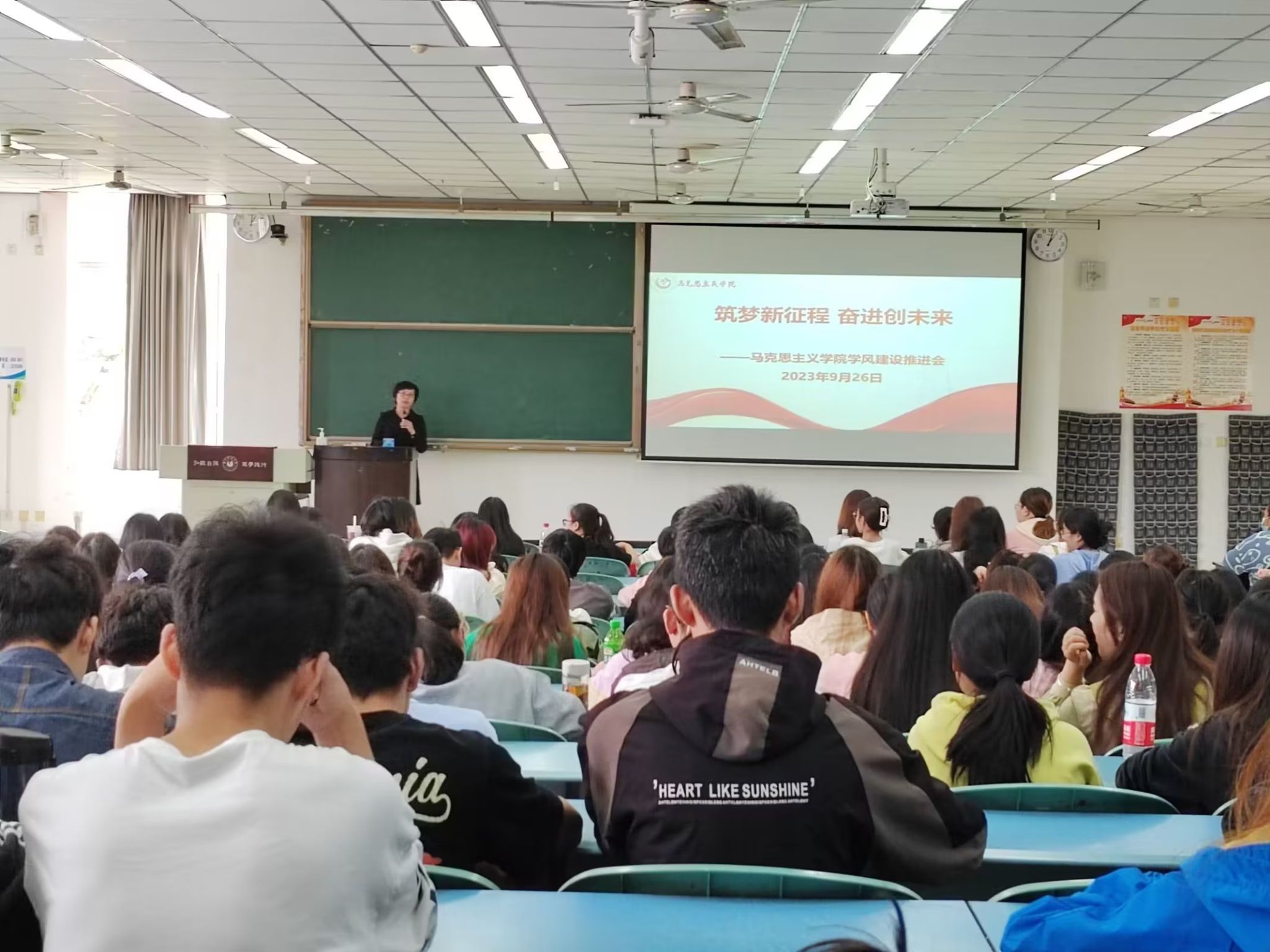 本网讯(文/王祉睿 图/罗雅欣、李晨)学风,是读书之风,是治学之风。为进一步加强我院学生学风建设,提高人才培养质量,推动学院内涵建设,促进学院高质量发展。9月27日下午,马克思主义学院于行知楼201教室隆重举行学风建设大会暨安全教育大会。马克思主义学院党委副书记、纪委书记钟永淑及21、22级全体学生参与本次大会,会议由学生工作办公室主任张红丽主持。