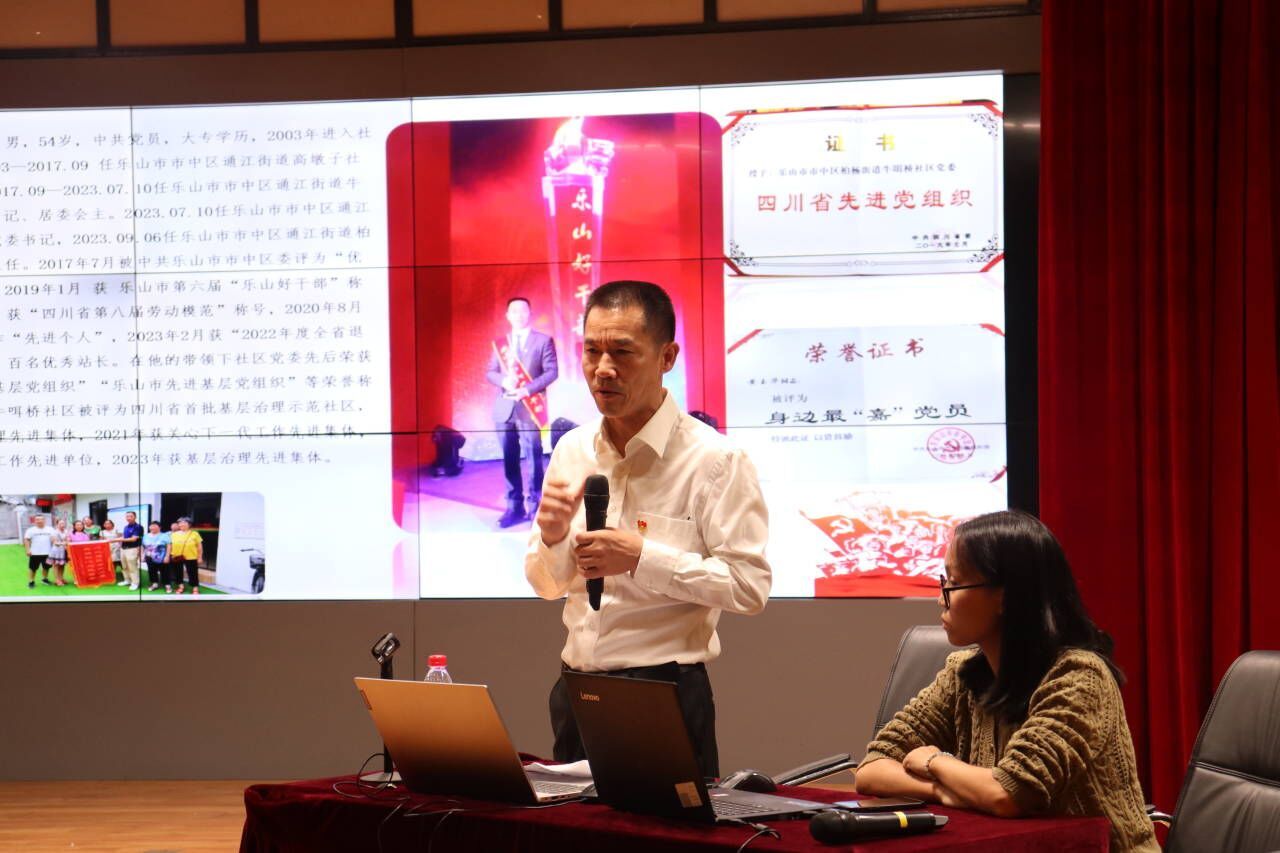 本网讯(文/张宇 图/毛伊璇)9月28日晚7点,由中共乐山市委组织部和我校联合举办的第四期“乡村振兴后备人才育苗班”在旷怡楼学术报告厅如期开讲。自9月7日开班以来,本期育苗班先后邀请了五通桥区冠英镇党委书记刘驰、峨边彝族自治县新林镇茗新村第一书记蔡明明、峨边彝族自治县综合行政执法局城管执法大队副大队长谭桂容和市中区通江街道柏杨社区党委书记黄玉华进行了四次授课。
