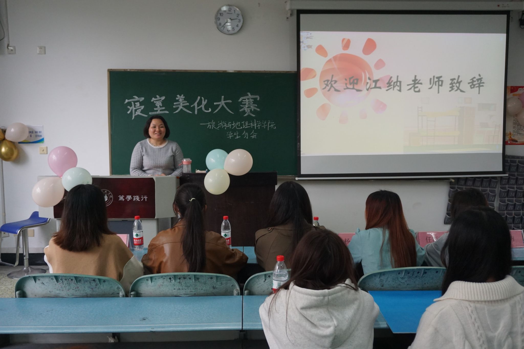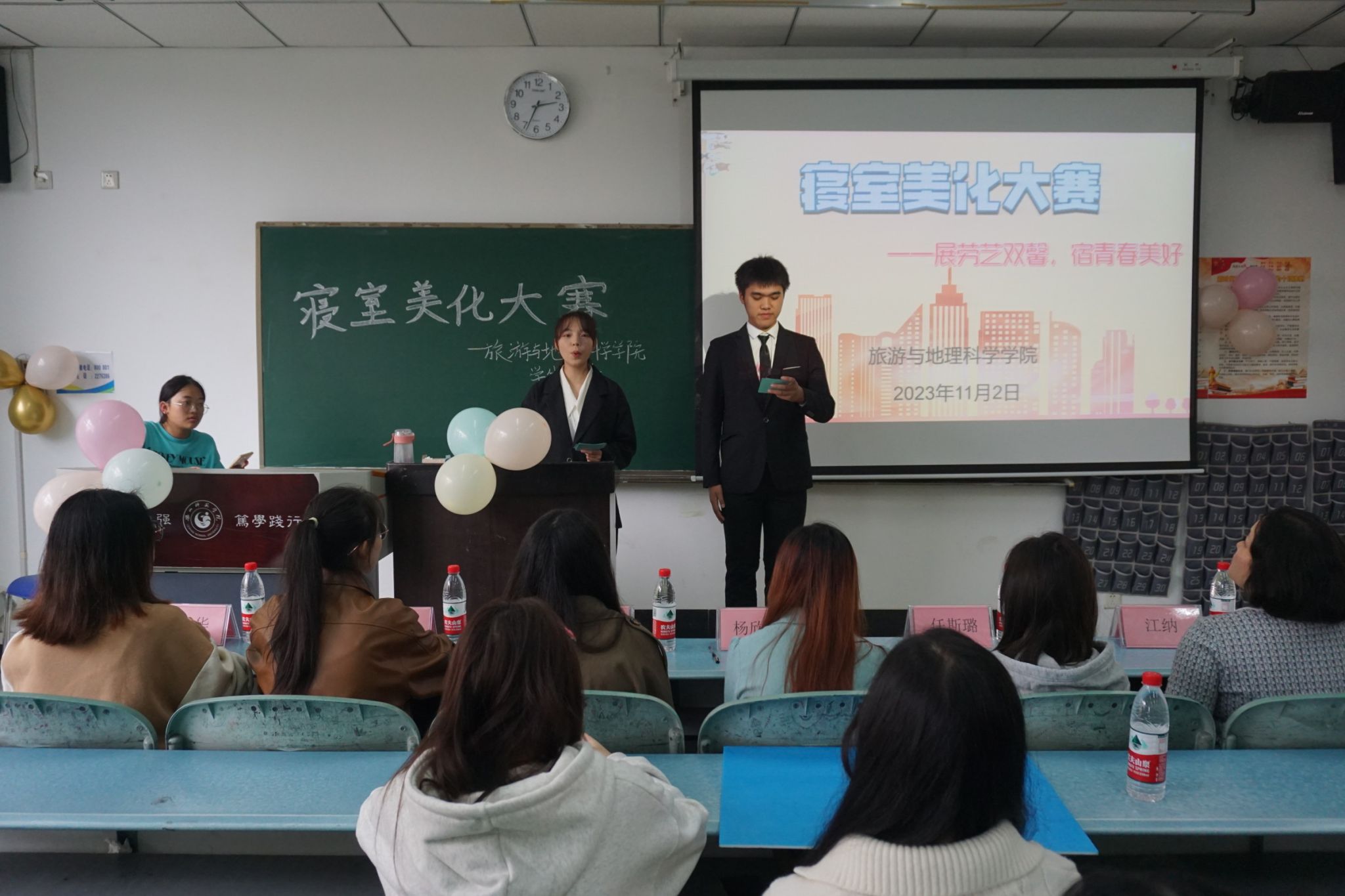 本网讯(文/刘涛 图/武鹏飞)11月2日,旅游与地理科学学院在行知楼310教室举行寝室美化大赛决赛。学院分团委书记江纳,分团委、学生分会学生干部代表以及23级全体寝室代表参加了本次大赛。
